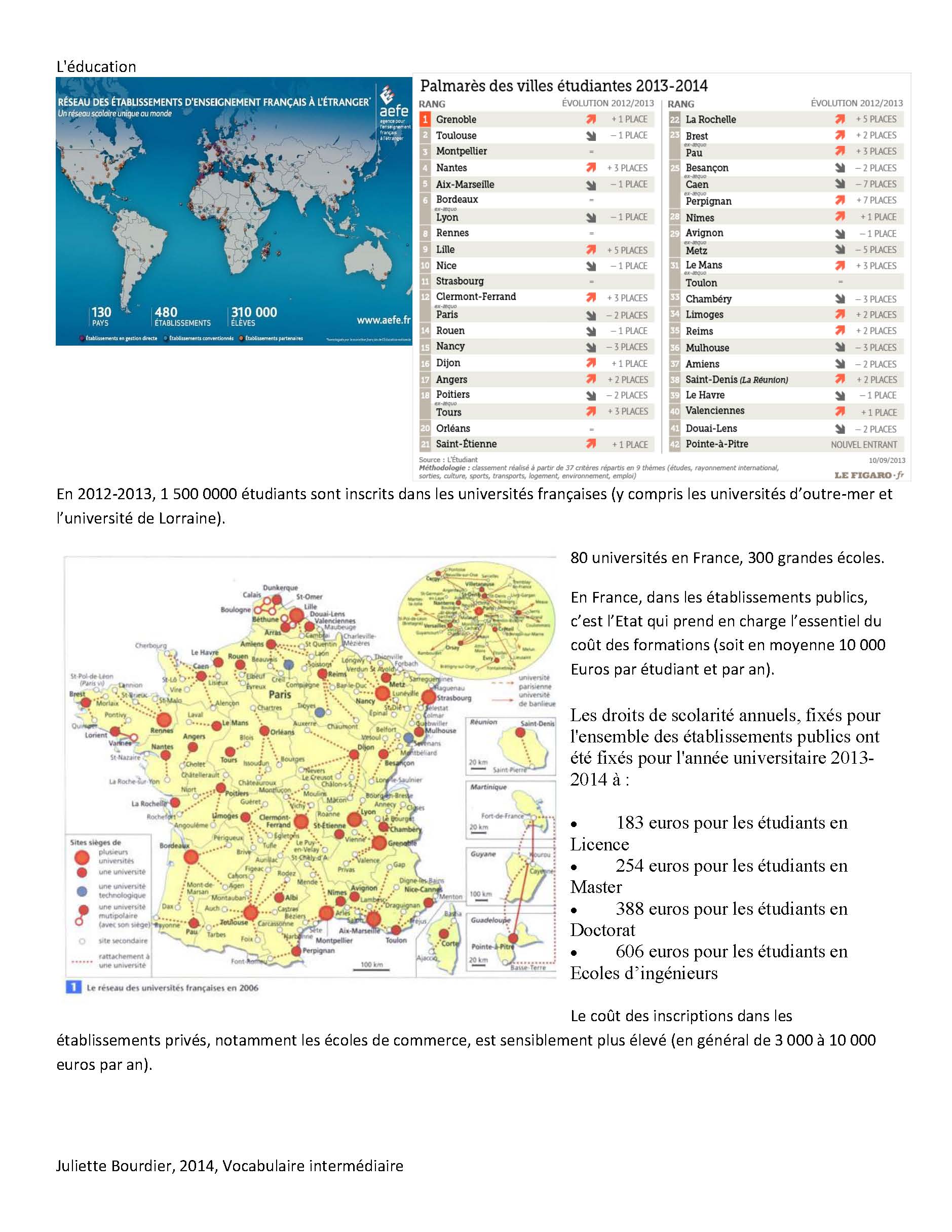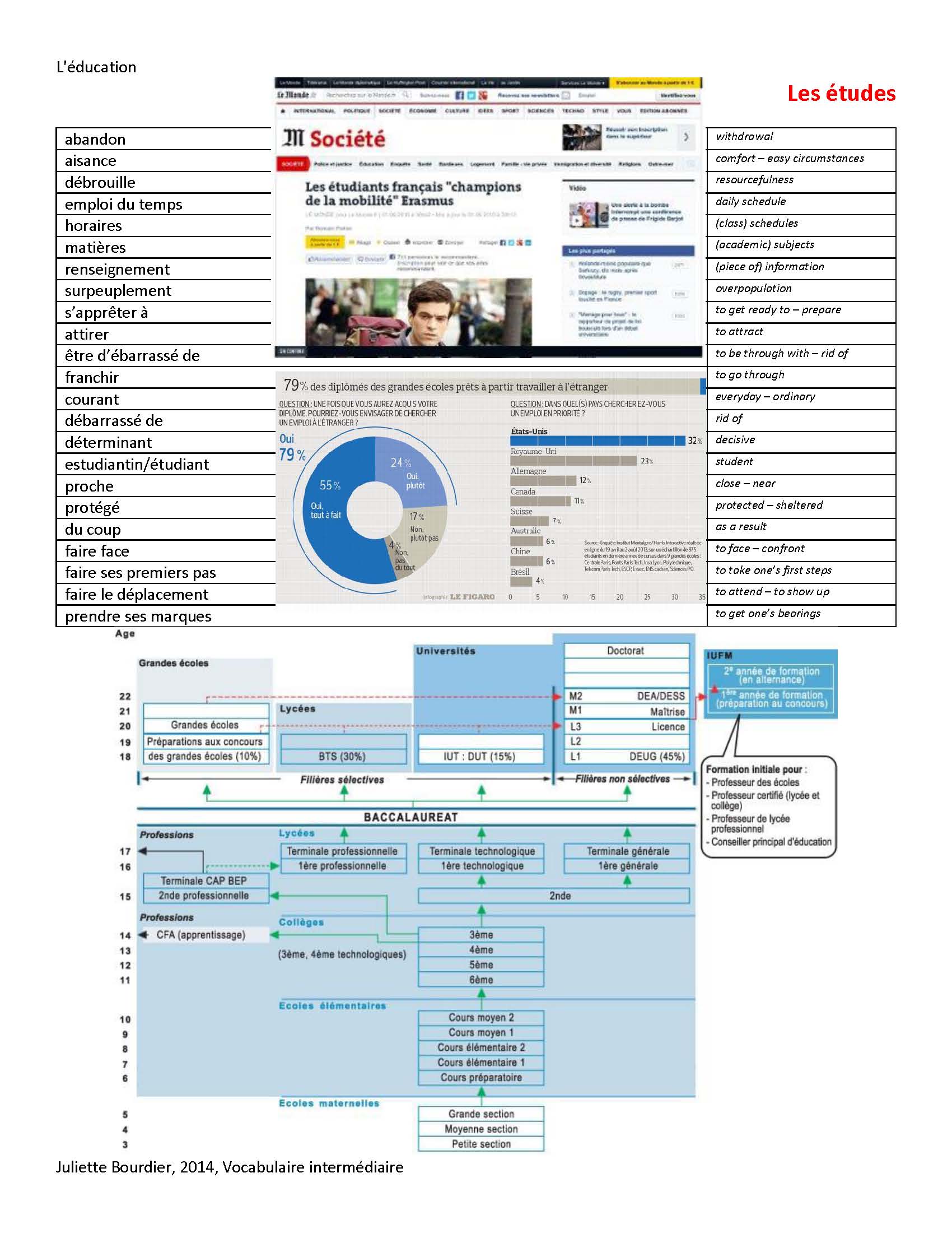 Voici le vocabulaire pour le chapitre sur l’éducation,