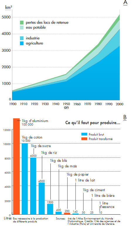 - L’agriculture, par exemple, s’est intensifiée avec une utilisation importante d’engrais et de pesticides. on constate également que le volume d’eau utilisé et pollué par les activités humaines ne cesse d’augmenter.