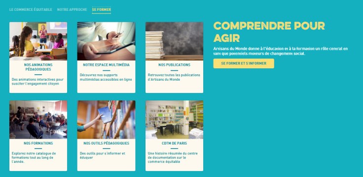 - l’éducation au commerce équitable : les équipes éducatives des associations locales mènent des animations pédagogiques et construisent des outils pour donner aux citoyens des clés de compréhension sur le commerce mondial