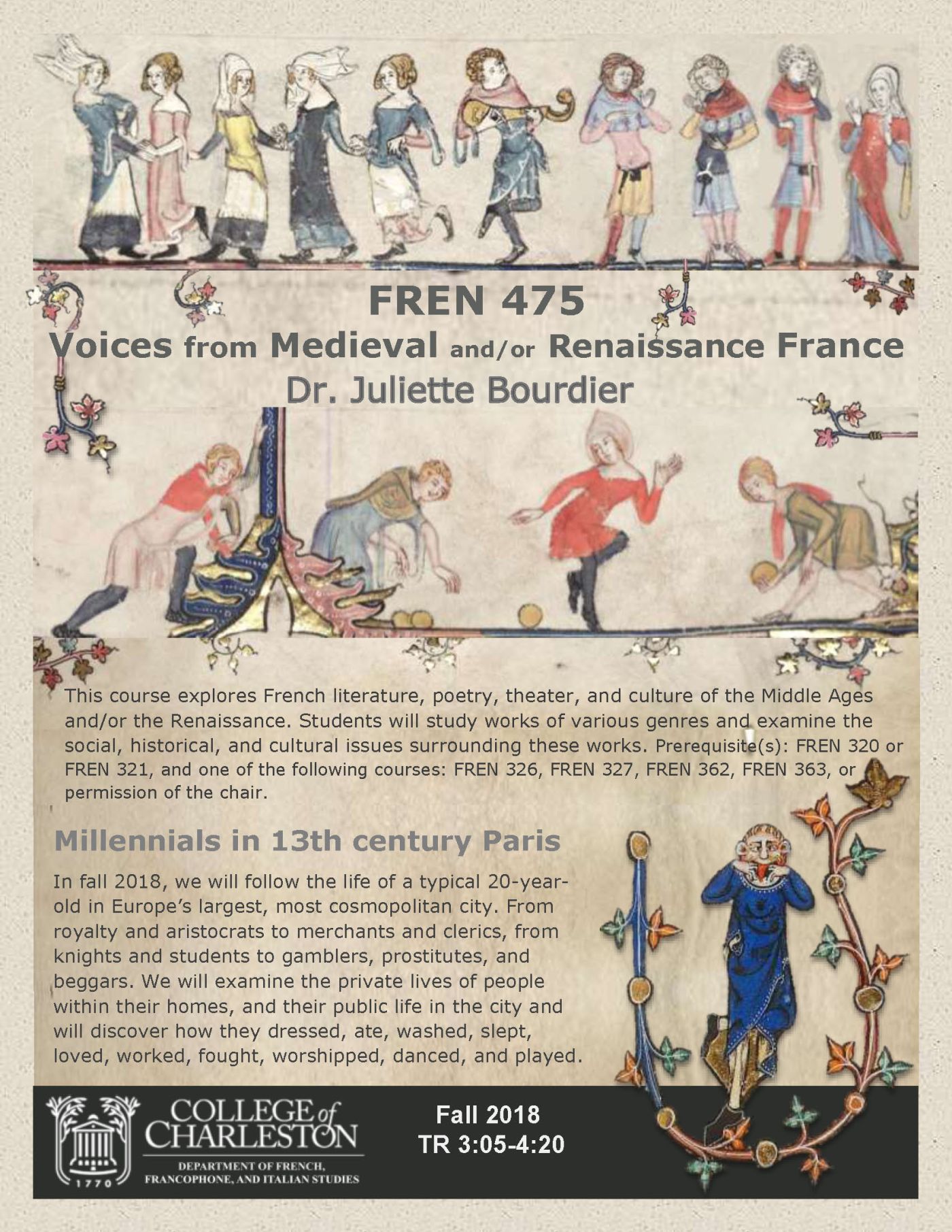 Medieval Millennials in 13th century Paris The course will focus on the understanding of medieval everyday in the life of a twenty year old in Paris, home to royalty, charlatans, Knights, merchants, clerics, prostitutes, gamblers, students, and beggars. We will... Continue Reading →